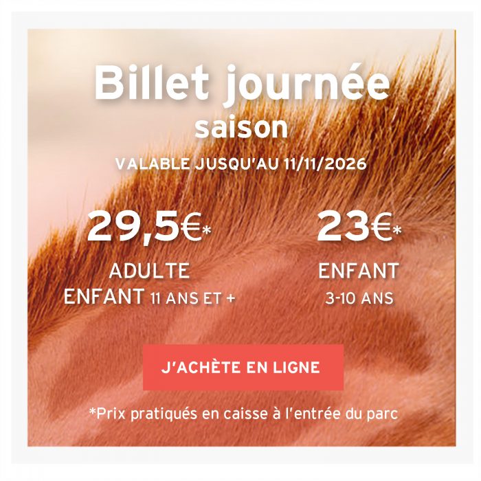 Prix pratiqués jusqu’au 11/11/2026 uniquement à l’entrée du parc sur présentation d’un justificatif :